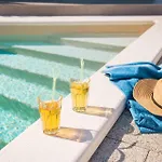 Гости также могут отдохнуть у открытого бассейна. На территории предусмотрена парковка.